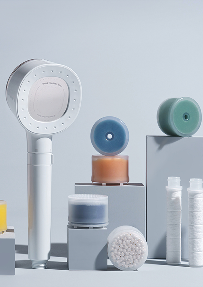 A head filter that helps remove residual chlorine to provide clean water and fragrant healing.